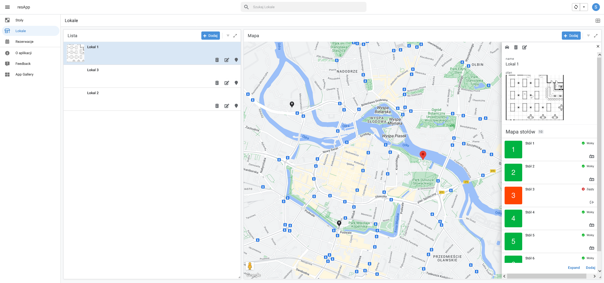Aplikacja umożliwia zarządzanie rezerwacjami stołów bilardowych w wielu lokalizacjach, co jest szczególnie przydatne dla firm posiadających sieć lokali. Personel może łatwo przełączać się między lokalizacjami i zarządzać rezerwacjami z poziomu jednego interfejsu. Dzięki integracji z Google Maps, aplikacja umożliwia łatwe znajdowanie lokalizacji wszystkich obiektów, co ułatwia klientom dotarcie na miejsce oraz zapewnia lepszą kontrolę nad danymi adresowymi w systemie.