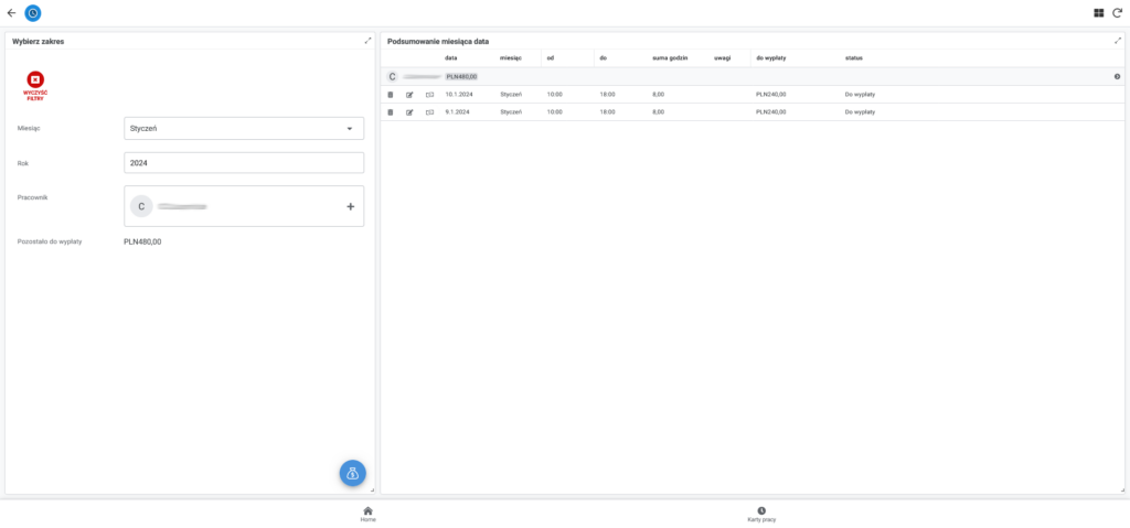 Aplikacja umożliwia sprawną administrację wypłatami poprzez dokładne śledzenie godzin przepracowanych przez pracowników. Dzięki temu właściciel firmy może łatwo generować raporty dotyczące czasu pracy i wypłat, co ułatwia procesy księgowe oraz zapewnia dokładność wypłat pracownikom. Dzięki dokładnemu śledzeniu godzin pracy i możliwości generowania raportów, aplikacja ułatwia procesy związane z naliczaniem wypłat, eliminując błędy i opóźnienia w rozliczeniach.